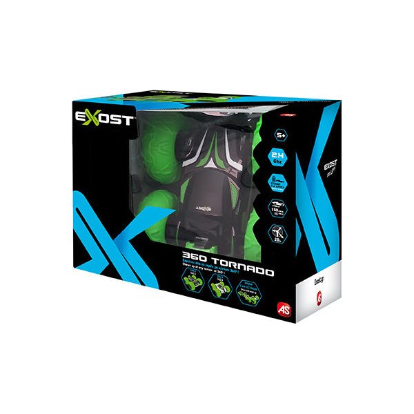 Tornado to czterokołowa maszyna o nowoczesnym, sportowym designie. Dzięki masywnym kołom z bieżnikami niestraszne mu nierówne drogi! Dodatkowo potrafi obrócić się o 360 stopni, zmieniając przy tym wygląd - ale frajda! Doskonale nadaje się do zabawy na podwórku. Proste i intuicyjne sterowanie za pomocą pilota gwarantuje świetną i precyzyjną zabawę.