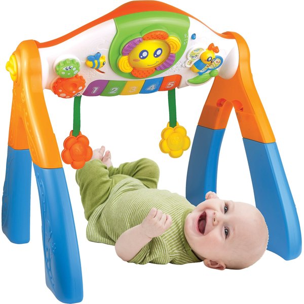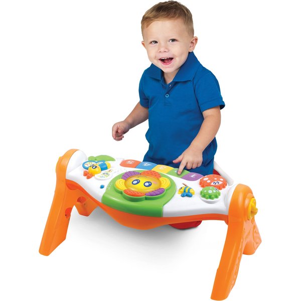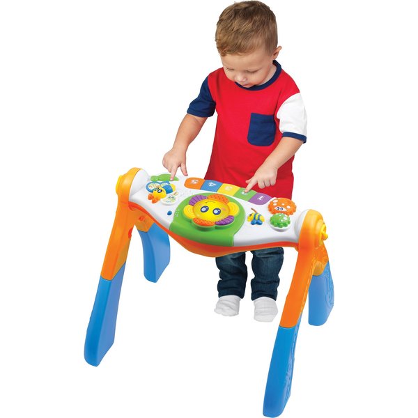 Centrum Zabaw to zabawka 3w1 od Dumel Discovery, która rośnie razem z maluchem. Interaktywny panel ma pełno guziczków, ruchomych elementów, tasiemek i efektów świetlnych oraz dźwiękowych. Maluch najpierw zajmie się zabawą na leżąco, potem siedząco, a kiedy będzie już samodzielnie stał to i na stojąco. Doczepione wiszące elementy posłużą jako dodatkowe zabawki. Blat stolika można obracać. Do produktu dołączone jest pianinko, które pozwoli na rozwój reaktywności i koordynacji ruchowej.