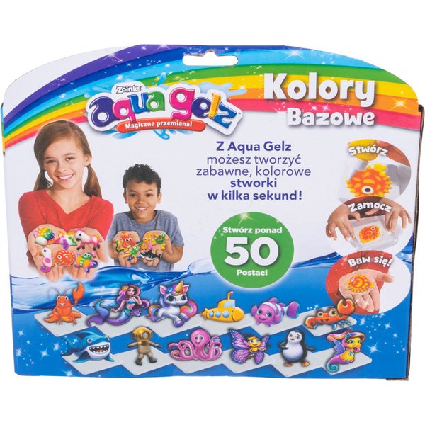 Twoje dziecko może wybierać spośród 5 różnych kolorów, aby stworzyć magicznego, cudownie klejącego potworka z żelowej masy. Wystarczy sporządzić roztwór według dołączonej do opakowania instrukcji z wody i granulatu, a następnie umieścić w nim dowolną małą foremkę (do kupienia z innym zestawem Agua Gelz, np. Zestaw Kreatywny, Zestaw Startowy, Zestaw Deluxe, Zestaw Mega Frajda) i poczekać, aż masa sama wypłynie z foremki. Doskonała zabawa dla każdego malucha, który skończył już 5. rok życia.
