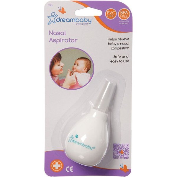 Gruszka, aspirator do czyszczenia noska dziecka z osłonką. Przeznaczona jest do higienicznego usuwania wydzieliny z nosa u niemowląt i małych dzieci. Kształt silikonowej końcówki zabezpiecza przed zbyt głębokim włożeniem gruszki do nosa dziecka. Praktyczna osłonka chroni końcówkę gruszki przed zabrudzeniem.