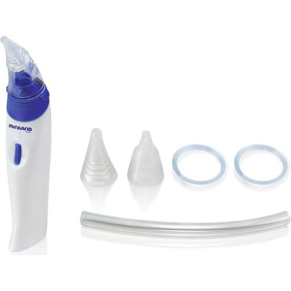 Elektroniczny aspirator do nosa firmy Miniland szybko złagodzi dręczący katar Twojego dziecka i wspomoże jego swobodne oddychanie.