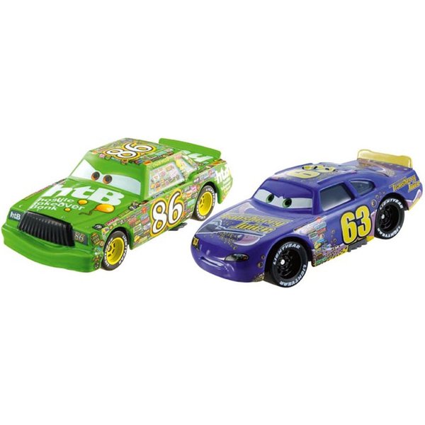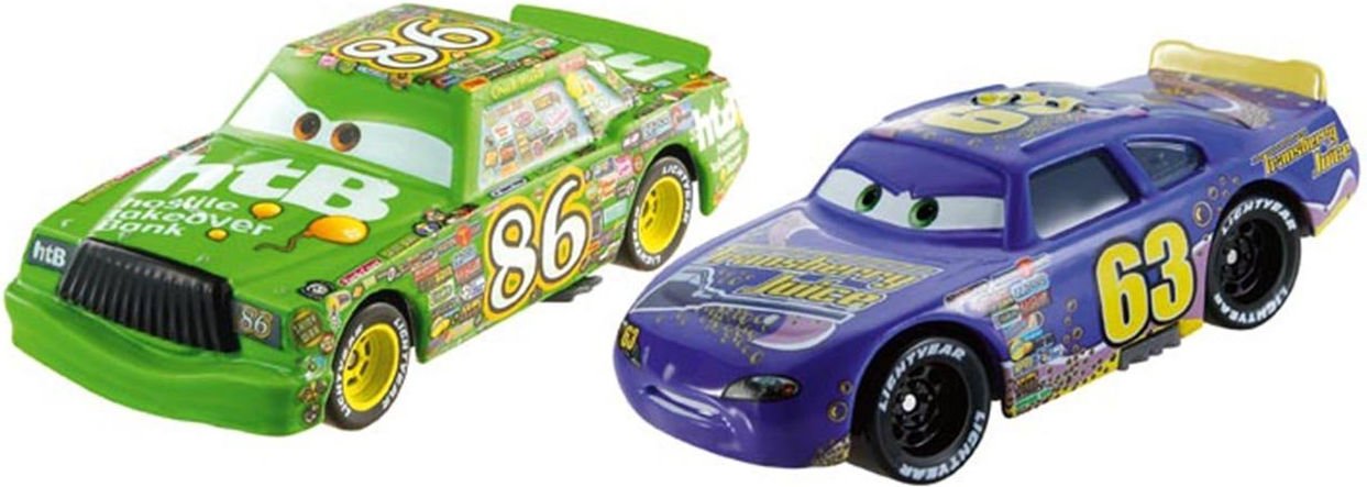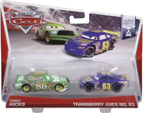 W opakowaniu 2 sztuka samochodziku - Chick Hicks i Transberry Juice no. 63.