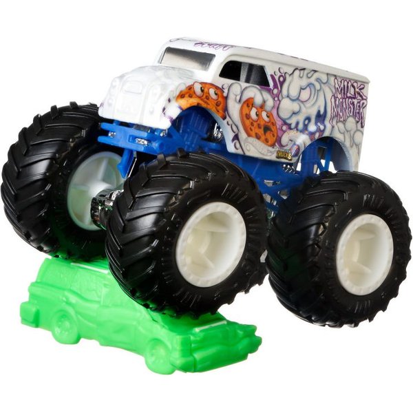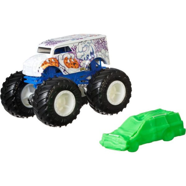 Monster Trucks wykonany jest w skali 1:64 i jest stworzony do rywalizacji i demolki! Dzięki wielkim terenowym kołom samochód ten poradzi sobie w każdych warunkach i nie ma przeszkody, która zdołałaby go zatrzymać. Piasek, niebezpieczne pagórki, grząskie tereny - ten samochód poradzi sobie wszędzie!Wzory na terenówkach nawiązują do prawdziwych pojazdów Monster Trucks z amerykańskich torów wyczynowych.