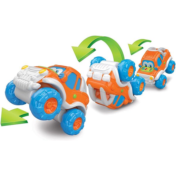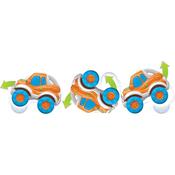 Samochodzik można sterować za pomocą pilota. W zależności od wybranego przycisku pojazd pojedzie do przodu, skręci w lewo albo.....zrobi salto! Zabawny fikołek z pewnością wywoła na twarzy maluszka wiele śmiechu.