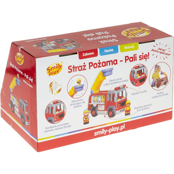 Straż pożarna to zabawka, która skrywa w sobie wiele niespodzianek. Wóz strażacki mówi frazy związane tematycznie ze strażą pożarną w języku polskim. Jego wyposażenie jest bardzo realistyczne. Efekty świetlne i dźwiękowe dodatkowo urozmaicają zabawę. Zestaw będzie idealnym prezentem dla małego strażaka.