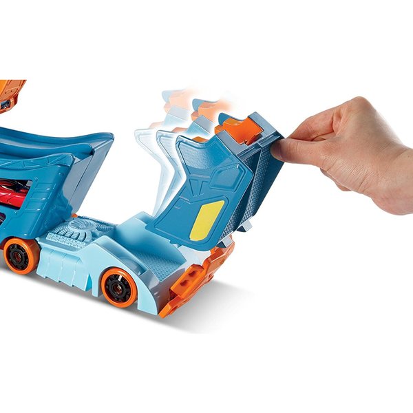 Ta mega ciężarówka to nie tylko auto ale i zarazem super szybki tor kaskaderski, na którym możesz zmierzyć się ekstremalną pętlą przy odrzutowej prędkości. Wyrzutnia rozpędzi samochód prosto na pętle, teraz tylko lądowanie na odpinany kadłub ciężarówki! Transport również pomieści sporą ilość autek na swojej naczepie.