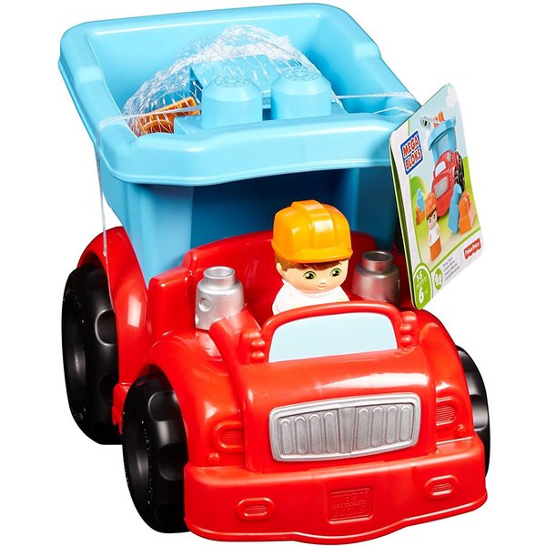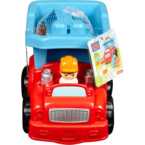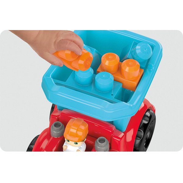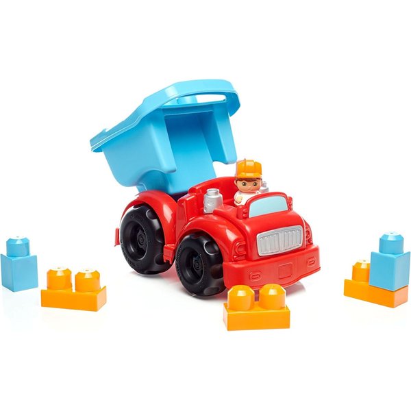 W zestawie: wywrotka oraz 6 elementów (klocki + figurka kierowcy)