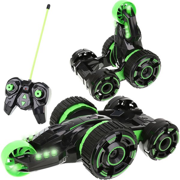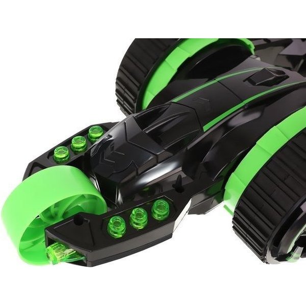 Samochód zdalnie sterowany, który potrafi różne sztuczki? Czemu nie! Pojazd zachwyci nas niezwykłymi funkcjami! Wyposażony w 5 kół potrafi pokonać każdą przeszkodę, która stanie mu na drodze! Wystarczy za pomocą pilota zmienić jego sposób poruszania się! Dzięki temu autko może pokonać schody, zderzyć się ze ścianą, a mimo wszystko będzie kontynuowało swoją jazdę. Dodatkowo samochodzik zachwyca efektami świetlnymi, co doda niesamowitych emocji podczas zabawy przy zgaszonym świetle. Szeroki zakres ruchów takich jak poruszanie się w zakresie 360 stopni, jeżdżenie do przodu i do tyłu oraz skręcanie i możliwość wykonywania driftów, zachwycą małego miłośnika motoryzacji.