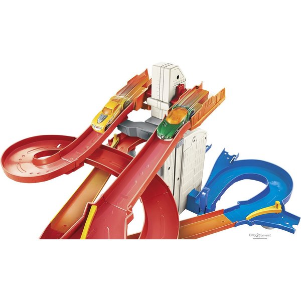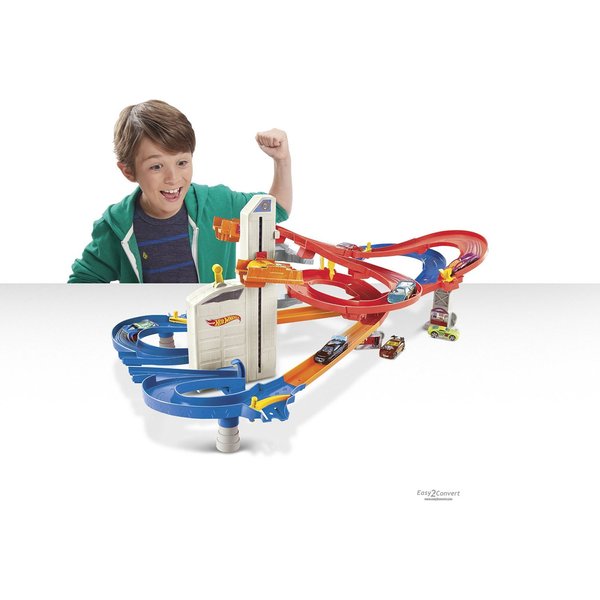 Twoje samochody Hot Wheels mogą mknąć po spiralach i ostrych zakrętach, a także wykonywać kaskaderskie popisy. Jednocześnie po torze może się ścigać kilka pojazdów, dzięki czemu na torze ciągle coś się dzieje i akcja ani na chwilę nie zwalnia.