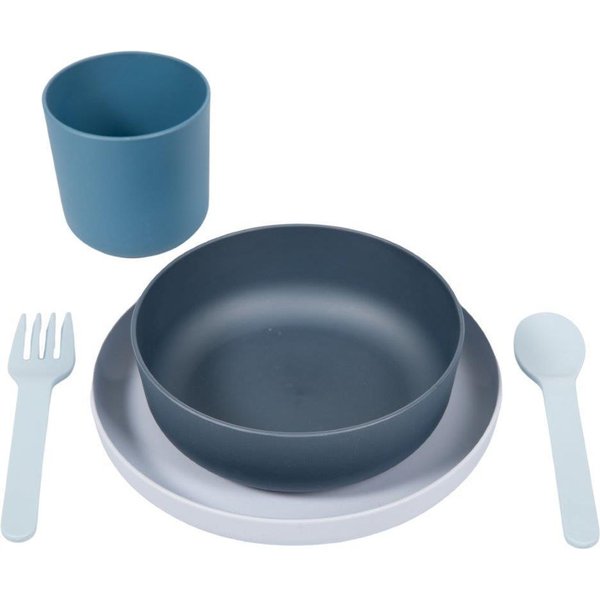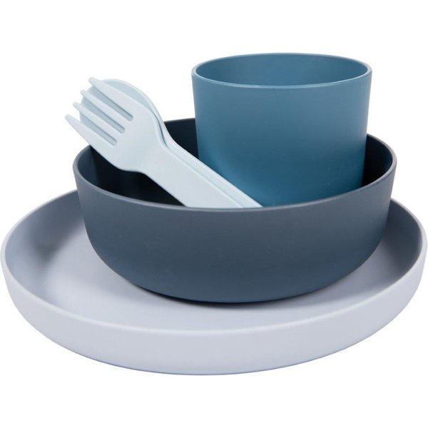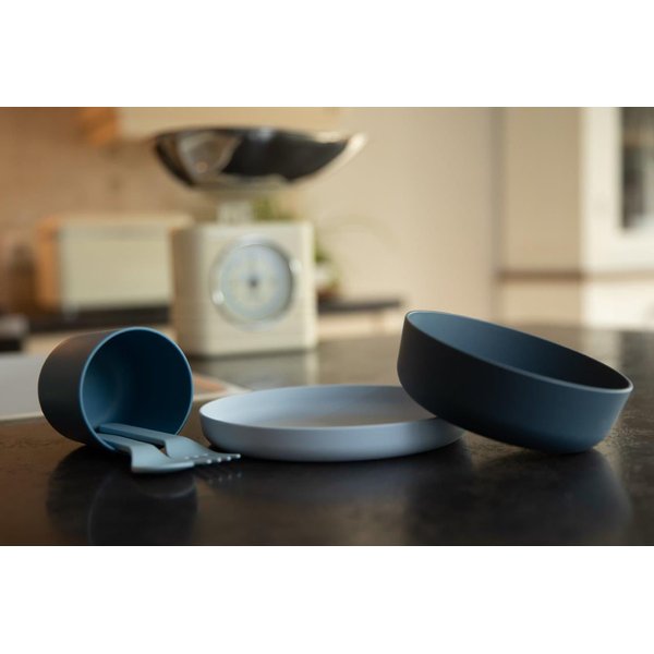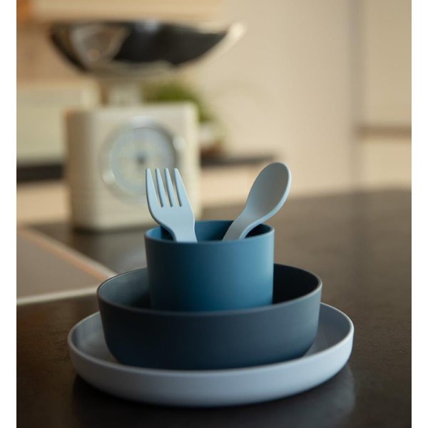 Ekologiczne naczynia i sztućce wykonane zostały z tzw. bioplastiku (CPLA), wytwarzanego wyłącznie z surowców naturalnych, takich jak kukurydza, maniok, trzcina cukrowa, buraki cukrowe, pszenica lub rośliny niespożywcze. Materiał ten jest całkowicie bezpieczny dla malucha, ponieważ nie zawiera żadnych szkodliwych substancji. Wykazuje przy tym dużą odporność na uszkodzenia i temperaturę aż do 100 stopni, co pozwala użytkować naczynia w zmywarce i mikrofalówce. W zestawie znajdziesz talerzyk, miseczka, kubek, widelec i łyżeczkę w rozmiarze i kształcie zaprojektowanym tak, aby odpowiadał potrzebom małych dzieci.