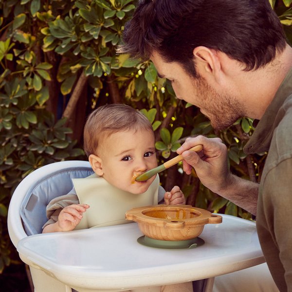Produkt ten wpisuje się w modny trend ekologiczny, nie zawiera plastiku ani żadnych szkodliwych substancji. Zestaw składa się z miski i łyżki obiadowej. To idealny sposób na początek karmienia maluszka. Możesz go z powodzeniem stosować już od 6. miesiąca. Materiał, z którego wykonano miskę i łyżkę to drewno bambusowe z certyfikatem pochodzenia ze zrównoważonych źródeł oraz silikon spożywczy.