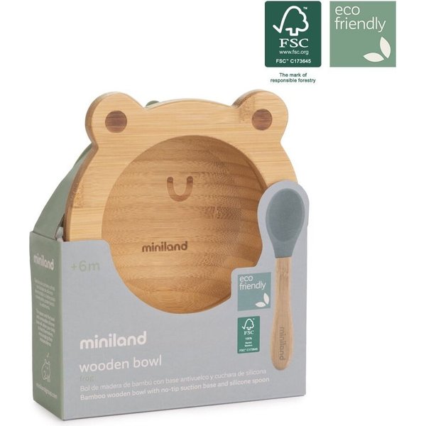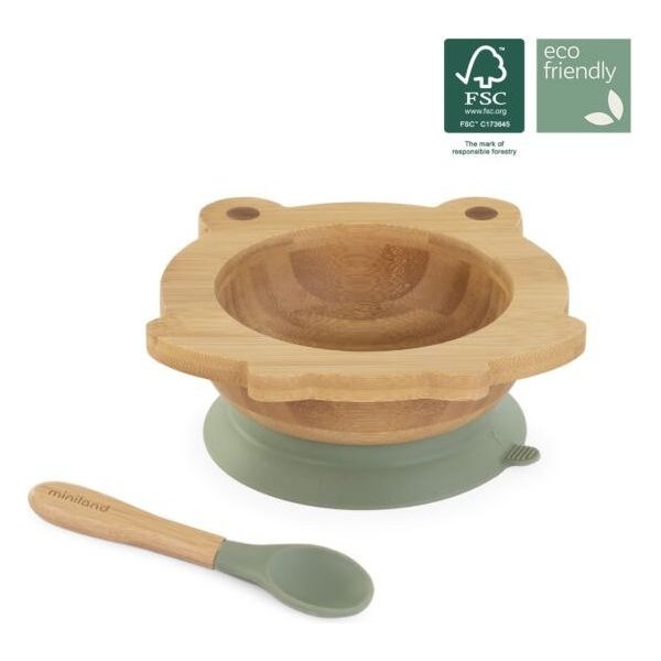 Bambusowa miseczka z przyssawką i łyżeczką BLW ECO-friendly to propozycja marki Miniland odpowiednia na początek przygody z samodzielnym spożywaniem posiłków dla małych miłośników ekologii.