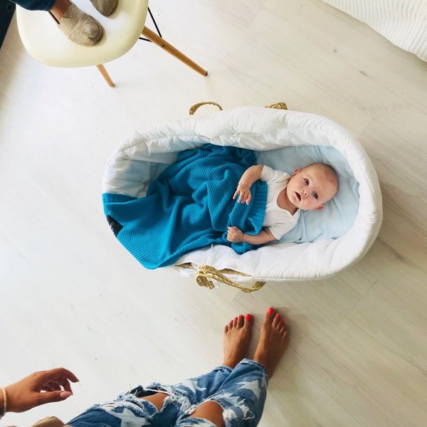 Model ten, posiadający typowo skandynawski design został wykonany z przędzy bambusowej oraz bawełny. Jest niezwykle lekki, delikatny i nie podrażnia skóry dziecka. Tkanina posiada podwójną gęstość i gruby splot, dzięki czemu prezentuje się nowocześnie i stylowo, oferując wymarzoną wygodę i ciepło małemu użytkownikowi niezależnie od pory roku. Kocyk jest przewiewny, nie powoduje nadmiernego pocenia, a dodatkowo posiada właściwości termoregulacyjne. To znakomity prezent z okazji baby shower lub narodzin dziecka.