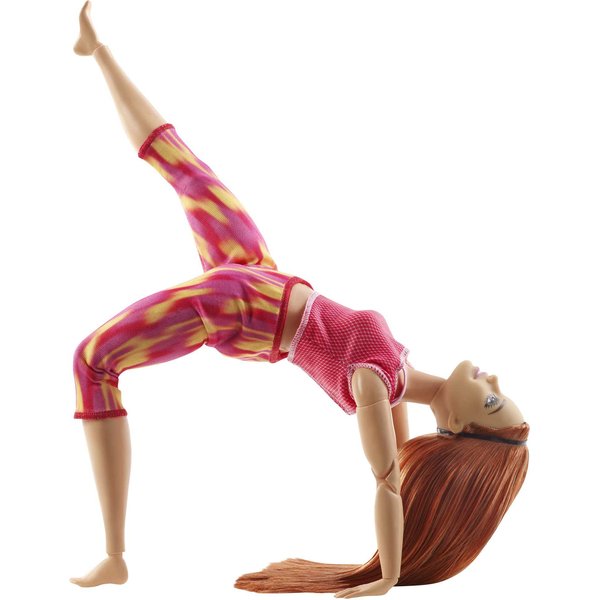 Dzięki wielu ruchomym częściom ciała lalkę można ustawić w najróżniejszych pozycjach. Barbie potrafi usiąść w siadzie skrzyżnym, zrobić mostek, skłon i wiele więcej! Teraz takie czynności jak jazda na rowerze, granie na gitarze, czy zabawa z pupilem staną się jeszcze bardziej realistyczne! Każda dziewczynka będzie zachwycona swoją nową, wygimnastykowaną Barbie! Zbierz całą kolekcję elastycznych lalek i odgrywaj wymyślone historie.