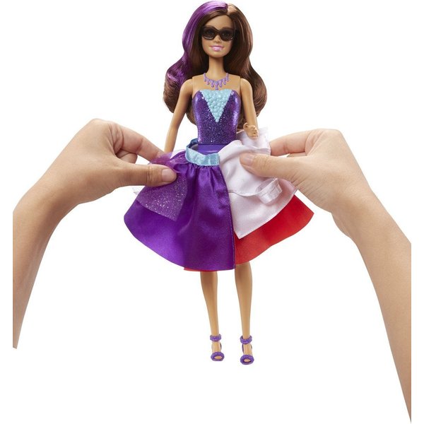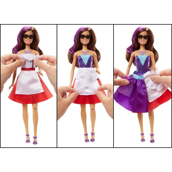 Dodatkowo lalka w łatwy sposób może zmienić strój kelnerki w piękną, błyszczącą sukienkę. Teresa jest już gotowa na przyjęcie!