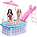Różowy zestaw zawiera wszystko co jest potrzebne, aby Barbie mogła się zrelaksować i wyprawić basenowe party wraz z przyjaciółmi.