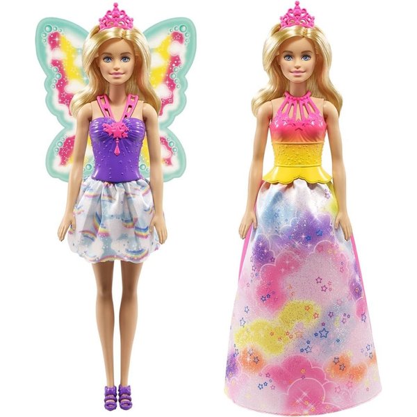 Barbie z Krainy Dreamtopia zachwyci każdą dziewczynkę kolorowymi kreacjami! Barbie ma piękne, blond włosy oraz tiarę, ponadto na plecach ma cudowne tęczowe skrzydełka to istna mała wróżka! Ale cóż to?! W baśniowym świecie wszystko jest możliwe, Barbie może przemienić się w syrenkę - ale frajda! Lalka dostarczy dużo radości i szczęścia.