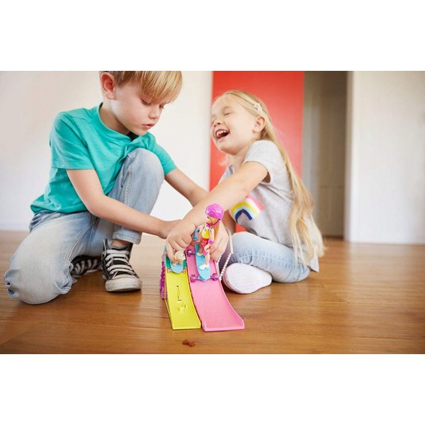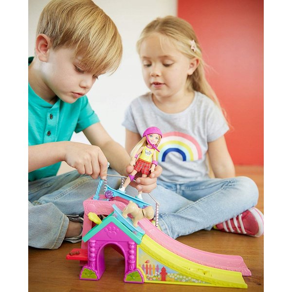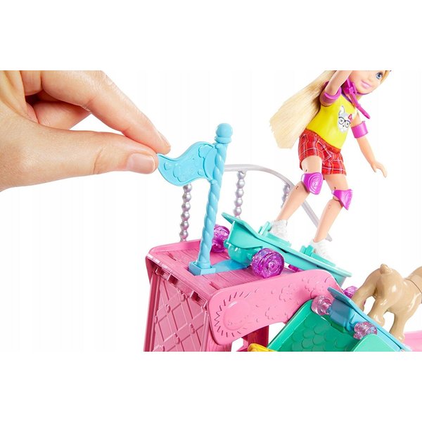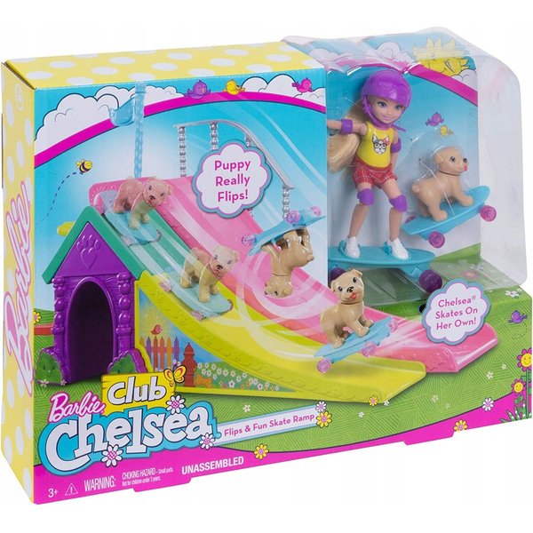 Wystrzałowy zestaw ze skateparkiem Club Chelsea to świetna zabawa dla najmłodszych. Chelsea - młodsza siostra Barbie, razem ze swoim pupilem lubią spędzać wolny czas na zabawie w skateparku. Zjeżdżają, wykonują różne triki i przy tym świetnie się bawią. Odpowiednie zabezpieczenia ochronią przyjaciół przed bolesnym upadkiem.