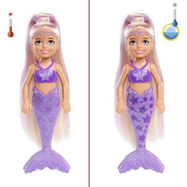 Marka Mattel przygotowała dla Twojej pociechy kolejną odsłonę Barbie® Color Reveal™ - tym razem jest to piękna lalka syrenka Chelsea o tajemniczym wyglądzie.
