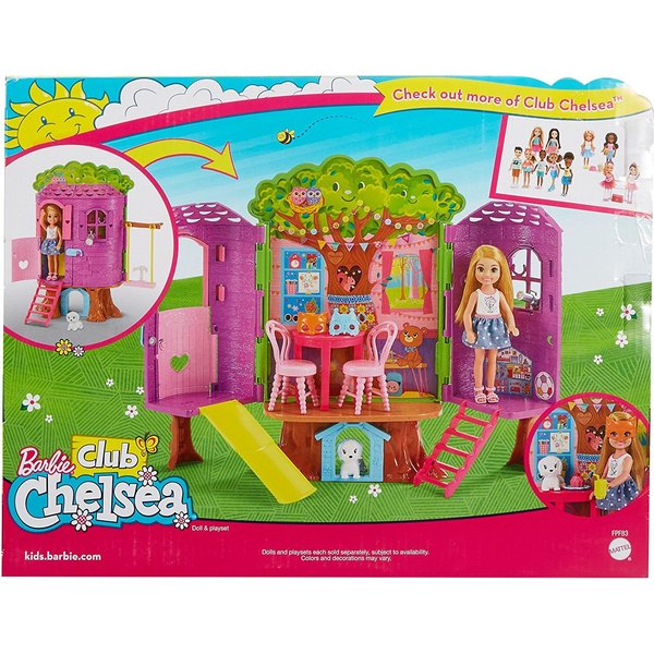 Domek na drzewie jest ulubionym miejscem Chelsea by spędzać wolny czas. W środku znajduje się wygodne krzesełka wraz z stoliczkiem i ciekawymi maskami, przez okienko można spojrzeć w dół za pomocą lunety. Do zabawy Chelsea ma również huśtawkę na gałęzi i zjeżdżalnię. Dodatkowo na dole w pniu drzewa jest przytulna buda dla pieska Chelsea.