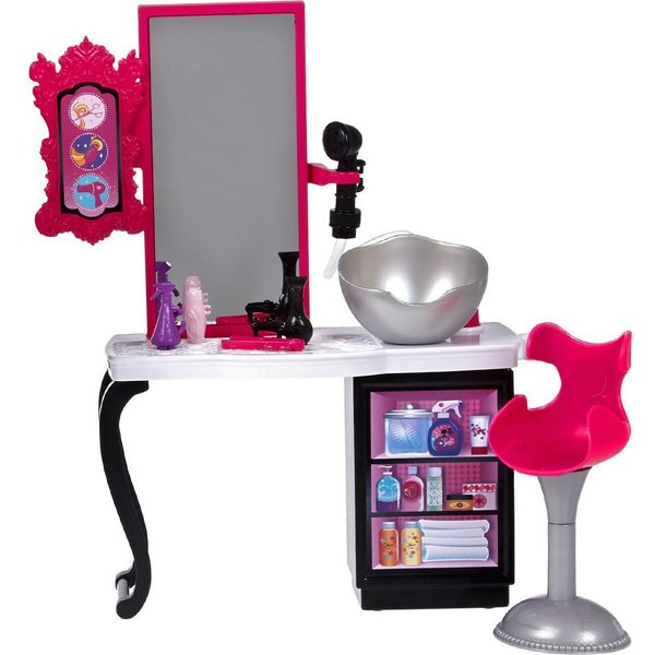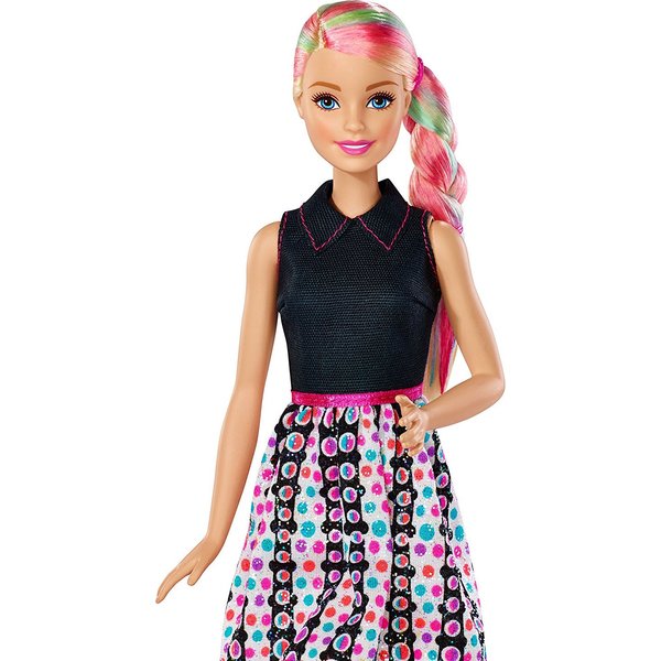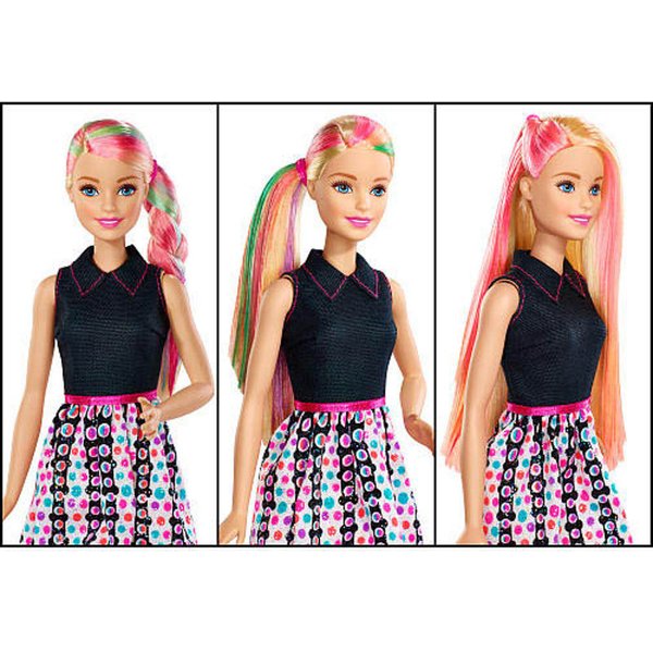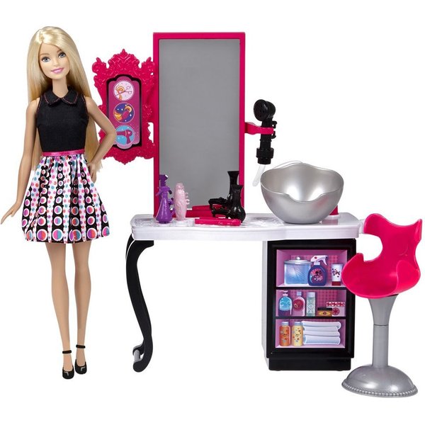 Lalka Barbie jest gotowa na nowy kolor włosów! Zabierz Barbie do swojego salonu fryzjerskiego i stwórz wspaniałą fryzurę! Do dyspozycji masz paletkę z ogromną ilością kolorów, które dodatkowo możesz mieszać i tworzyć nowe odcienie. Później wystarczy nanieść otrzymany kolor na włosy lalki za pomocą pędzelka i gotowe - twoja niepowtarzalna lalka cieszy się już nową koloryzacją. Oprócz akcesoriów do koloryzacji w zestawie jest także prostownica, suszarka, dodatkowe pasemka włosów, gumki, grzebień, stanowisko do mycia włosów, wygodny fotel oraz pelerynka - to prawdziwy salon fryzjerski! Zmycie koloru z włosów Barbie jest niesamowicie proste.