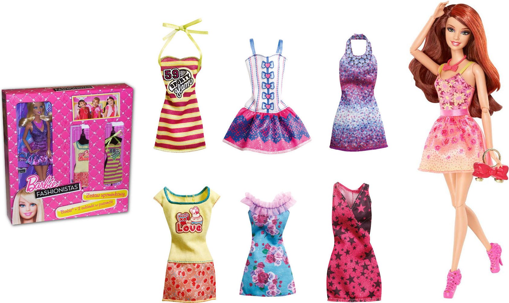 Barbie Fashionistas + zestaw z 2 sukienkami Mattel