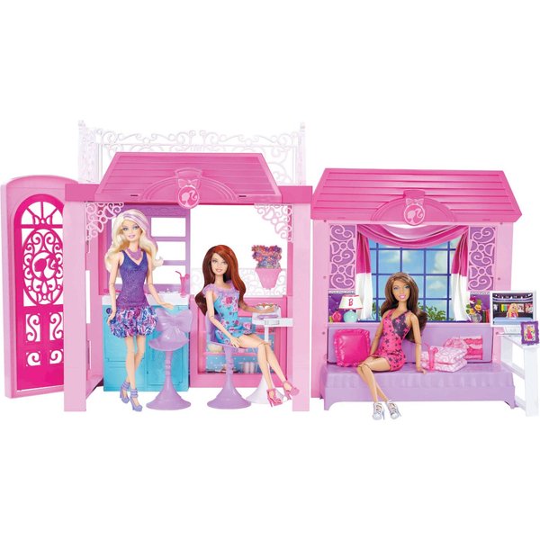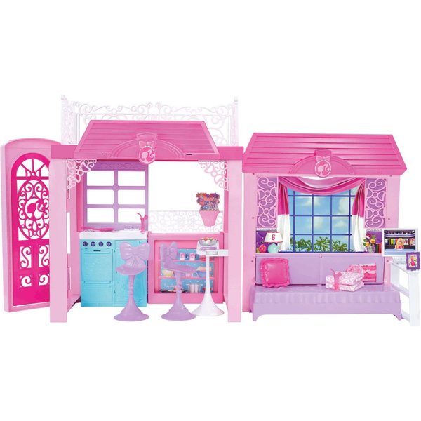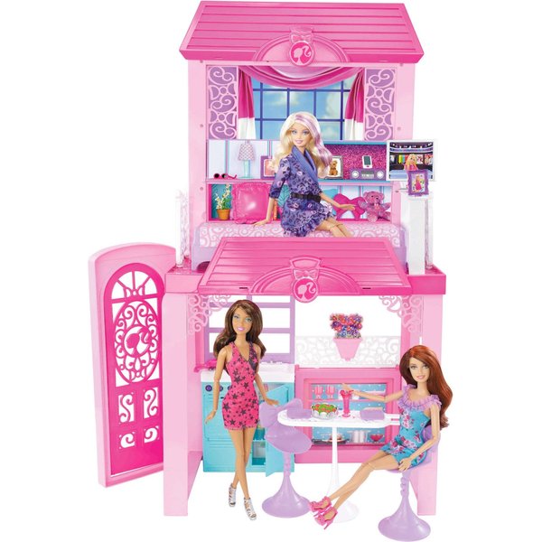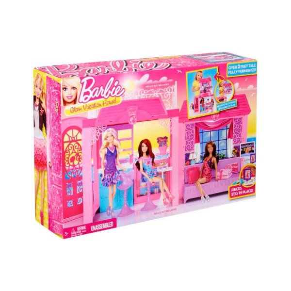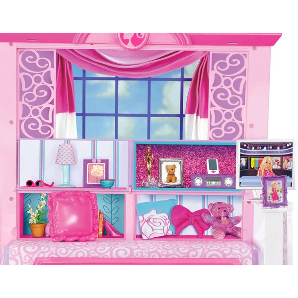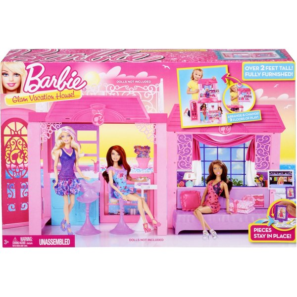 Różowy domek jest duży i przestrzenny, można go urządzić według pomysłu i dowolnie przemeblowywać! Domek posiada opcje dowolnego tworzenia liczby poziomów, można ustawić części obok siebie i mieć domek parterowy lub jedno na drugim i mieć sypialnię na piętrze. Barbie posiada kuchnię, jadalnię wyposażoną w rozkładany stolik barowy. Jest również salon, który raz dwa może stać się sypialnią. Na dachu wakacyjnej willi jest wielki taras na którym barbie lubi się opalać wraz z przyjaciółmi.