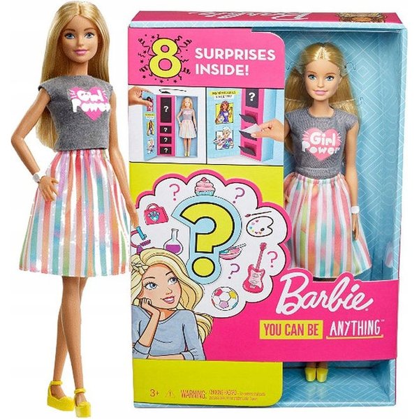 Lalka Barbie przyniesie jeszcze więcej wrażeń! Teraz już samo otwieranie pudełka przyniesie wiele emocji bo nie wiadomo co znajduje się w środku! Kim dzisiaj zostanie Twoja nowa przyjaciółka? Lekarką, malarką, a może kucharką? Zestaw posiada akcesoria tematyczne, które przydadzą się podczas wcielania się w dany zawód. Ten komplet dostarczy wiele godzin ciekawej zabawy pozwalając wejść w tajniki pracy różnych specjalistów. Lalka ubrana jest w prywatny strój tj. piękną koszulkę, spódnicę oraz dopasowane buty.