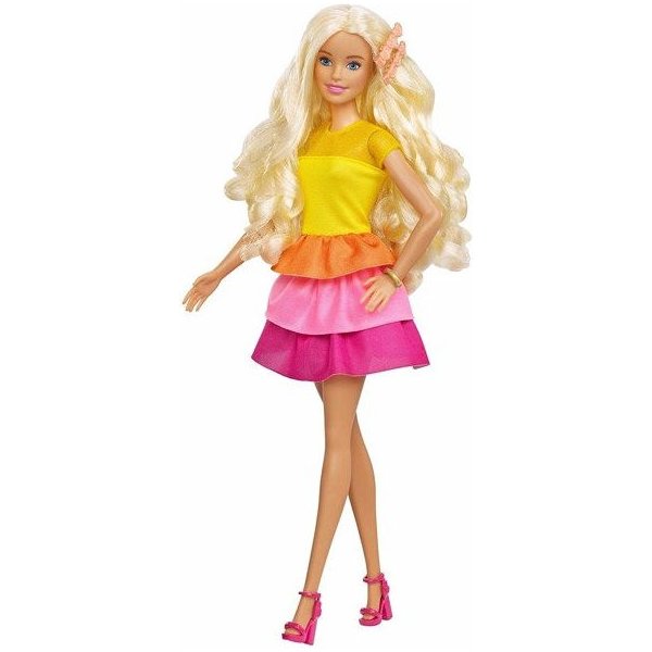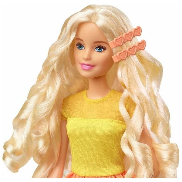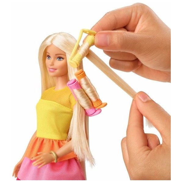 Piękne stylowe loki w roli głównej! Piękna lalka ma długie i lśniące blond włosy, które można kręcić na wałkach lub używając lokówki. Za pomocą ozdób do włosów można upiąć wcześniej zrobione fale w szalone kompozycje. Każda dziewczynka będzie zadowolona ze swojej nowej Barbie.