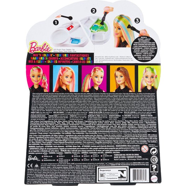 Wybierz kolor z dostępnych arkuszy, dodaj wodę, a później nanieś farbę na pasmo włosów Barbie za pomocą łyżeczko-pędzelka. Kolory możesz ze sobą mieszać, dzięki czemu powstaną unikalne barwy. Z tak oryginalną fryzurą twoja lalka będzie się prezentować fantastycznie!