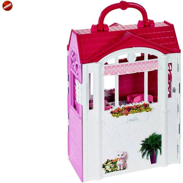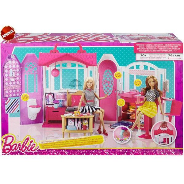 Każda mała miłośniczka Barbie marzy o domku dla swojej ulubionej lalki. Kolorowy domek otwiera się, a w środku czeka wiele niespodzianek. Podzielony jest na trzy umeblowane pokoje. Sypialnia posiada rozkładane łóżka oraz szafkę nocną z akcesoriami. W kuchni Barbie może usiąść z przyjaciółmi i zjeść śniadanie. Jest łazienka, a w niej prysznic oraz toaleta.