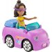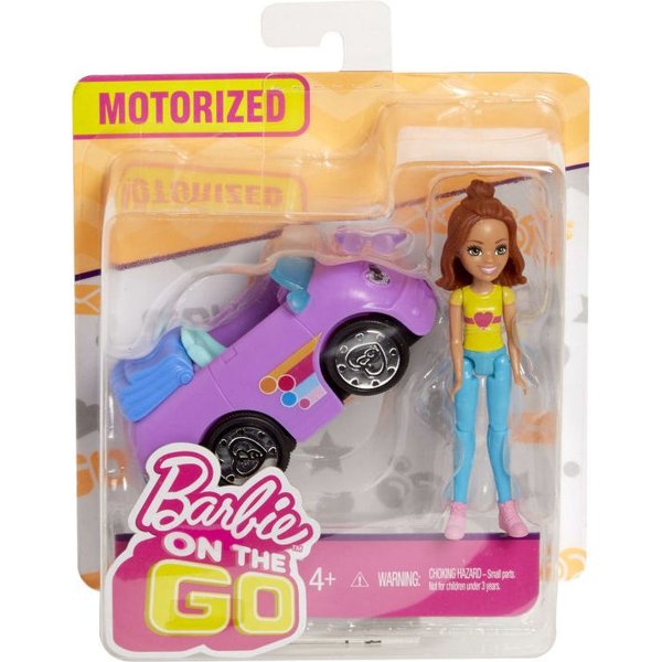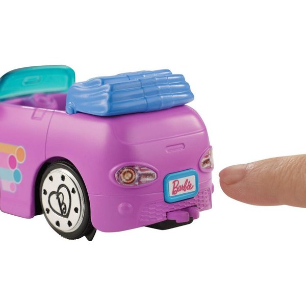 Barbie wyrusza w podróż swoim nowym, różowym autem. Autko zasilane jest bateriami, także jeździ jak prawdziwe. Malutka laleczka bez problemy zmieści się w swoim aucie. Ubrana w żywe kolory i po założeniu okularów słonecznych jest gotowa do podróży!