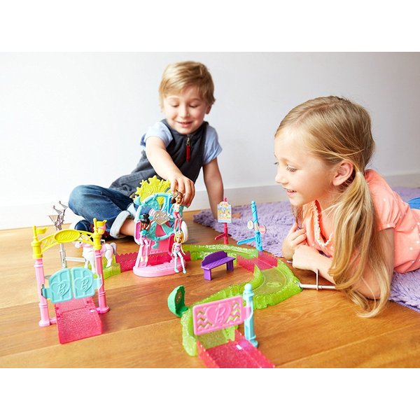 Barbie i jej konik wyruszają na wspaniałą przygodę po wesołym miasteczku! Na drodze czeka wiele słodkich atrakcji.