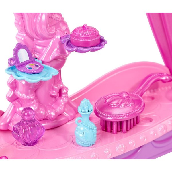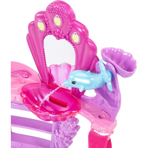 Właścicielka zestawu może umyć swojej lalce włosy w specjalnej fryzjerskiej umywalce, następnie wysuszyć i wymodelować włosy przed lustrem. Salon wyposażony jest we wszystkie niezbędne akcesoria do pilęgnacji włosów syrenek i nie tylko! To wszystko w wyjątkowym magicznym wystroju jak w bajki!