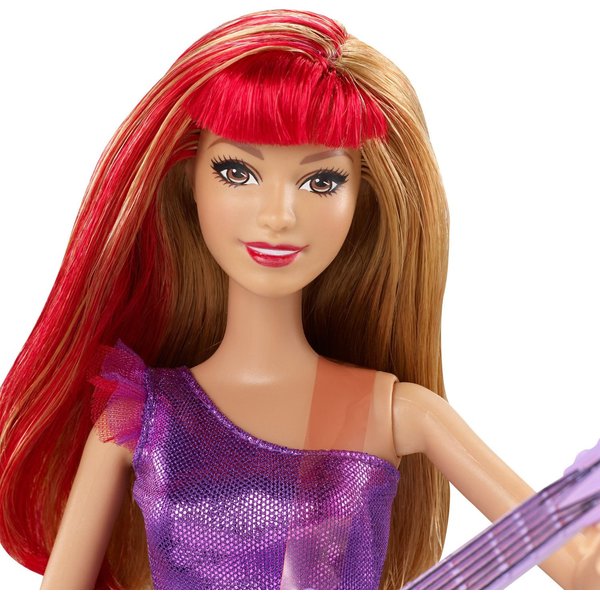 Gwiazda country prosto z filmu Barbie Rockowa Księżniczka. Lalka ubrana jest w kolorową sukienkę z koronkową baskinką oraz kowbojskie buty. Długie włosy gwiazdy zdobią czerwone pasma. Jak na prawdziwą gwiazdę country przystało lalka ma w zestawie gitarę.