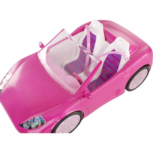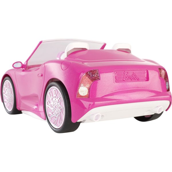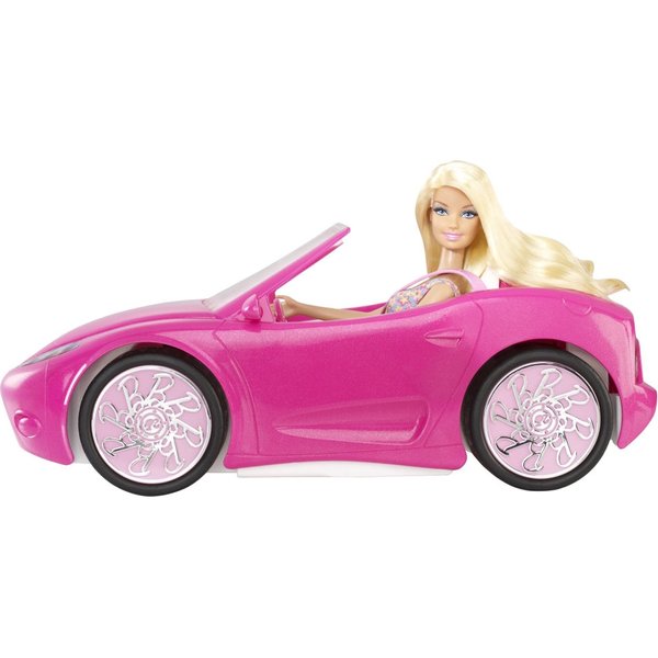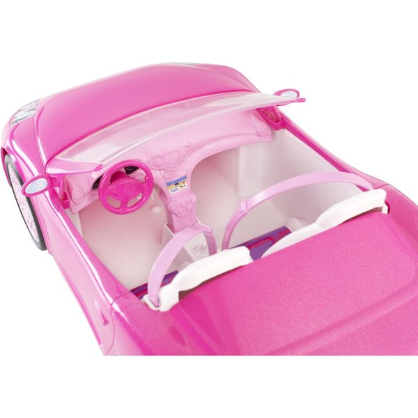 W swoim różowym Cabrio zrobi prawdziwą furorę na mieście! Różowe felgi ze srebrnym logo dodają stylu i szyku Barbie! Do samochodu można posadzić lalkę Barbie i pasażera.