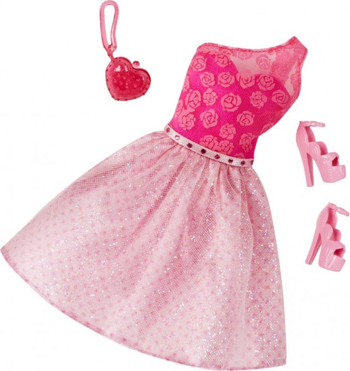 Każda mała właścicielka lalki Barbie uwielbia ją stroić i przebierać. Zestaw sprawi prawdziwą radość. Lalka będzie gotowa na każde wielkie wyjście. Zestaw zawiera ubranko dla lalki oraz dodatki - buty i torebkę.