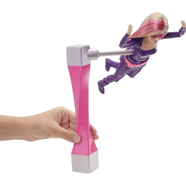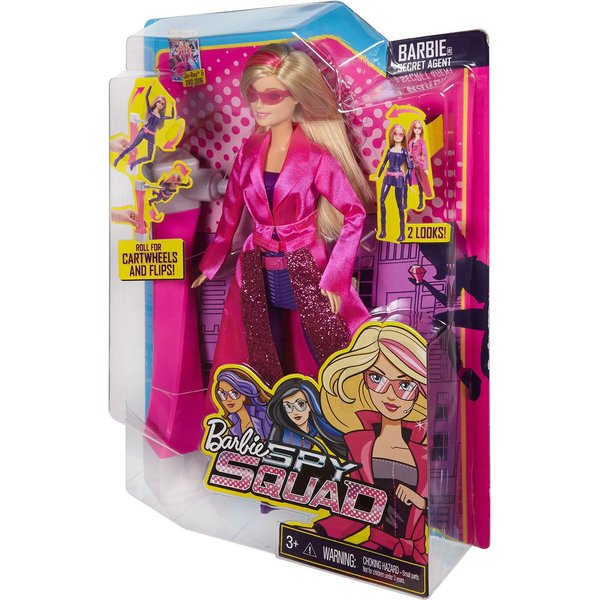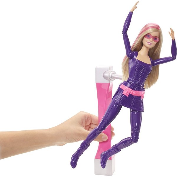 Lalka z nowego filmu "Barbie - Tajne agentki" wyposażona w gadżety szpiegowskie sprawi frajdę każdej dziewczynce. Zdejmij elegancki, różowy płaszcz i zamocuj lalkę na specjalnym stojaku - wykonuj salta oraz obroty, które pomogą w złapaniu złodzieja.