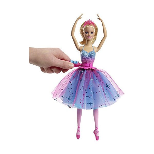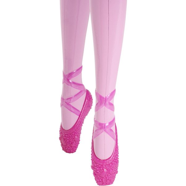 Do lalki Barbie dołączony jest specjalny uchwyt, dzięki któremu nasza baletnica potrafi kręcić prawdziwe piruety. Mechanizm jest bardzo prosty i łatwy w obsłudze - wystarczy przyczepić uchwyt do różowego paska lalki i nacisnąć w dół, aby cieszyć się uroczymi piruetami w wykonaniu Barbie!