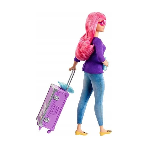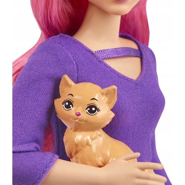 Wybierz się w niezapomnianą podróż z Barbie Daisy oraz jej kotkiem! Barbie ma pojemną fioletową torbę, która pomieści wszystkie akcesoria, które będą potrzebne w poznawaniu nowych miejsc i przemieszczania się z miejsca na miejsce. Przygoda rozpoczyna się już dziś!
