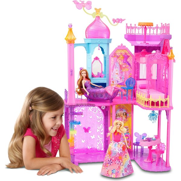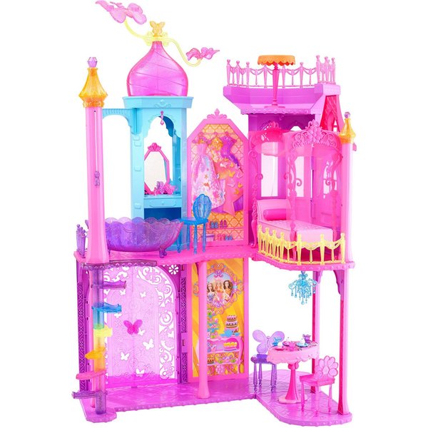 Teraz wraz z bajkowym, wielkim zamkiem można ogrywać sceny z najnowszego filmu Barbie i Tajemnicze Drzwi. Kolorowy zamek kryje w środku czeka wiele niespodzianek. Odkryj wszystkie zakamarki zamku. W zamku znajdziesz między innymi wannę, stolik z lustrem, stół i krzesła, dzbanek na herbatę i więcej. Świetna zabawa dla małych miłośniczek Barbie.
