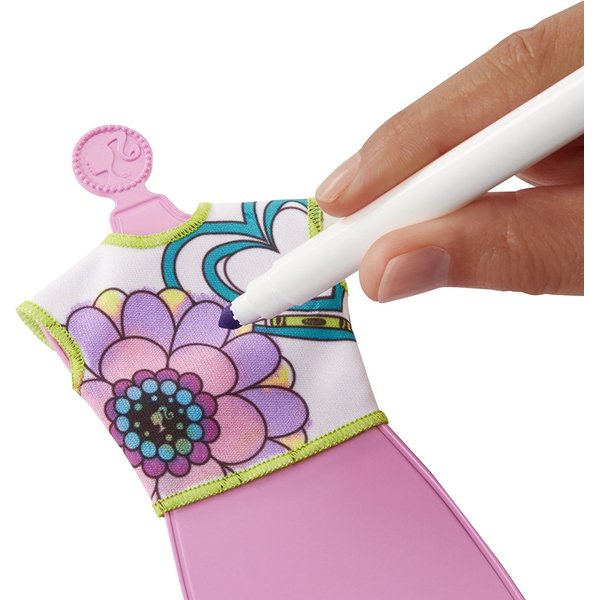 Za pomocą markerów dołączonych do zestawu stwórz Barbie oryginalną, niepowtarzalną stylizację a gdy Ci się znudzi, spłucz ją pod wodą i zacznij zabawę od nowa. Do dyspozycji masz formę na którą możesz założyć ubranko oraz pięć kolorowych markerów, które zmywają się pod wpływem wody.