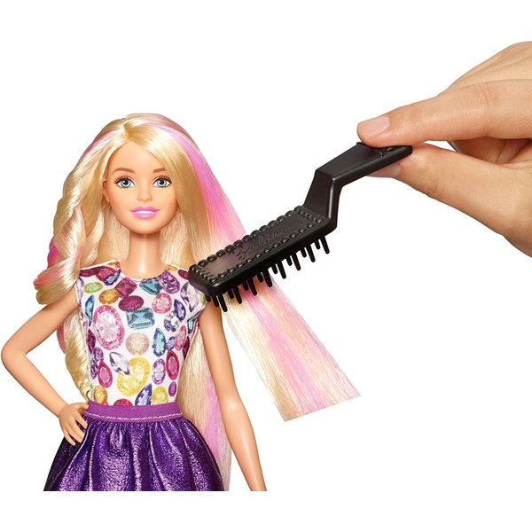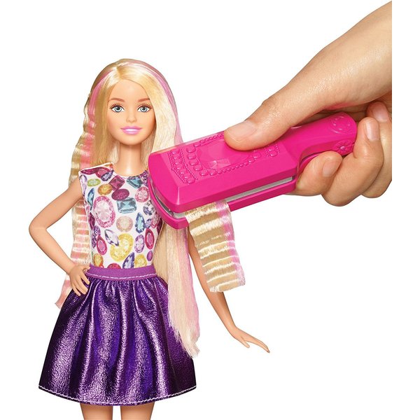 Nowa seria Barbie Zrób to sama jest ciekawym pomysłem na prezent dla dziewczynki, która uwielbia na swój sposób stroić swoje lalki. Piękna lalka ma długie blond włosy z fioletowymi pasemkami, które można falować i kręcić na różne sposoby. Za pomocą gumeczek do włosów można upiąć wcześniej zrobione fale w szalone kompozycje. Każda dziewczynka będzie zadowolona ze swojej nowej Barbie.