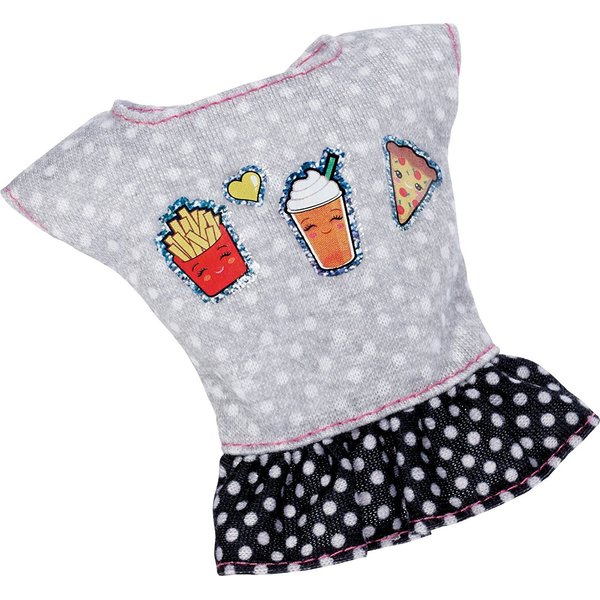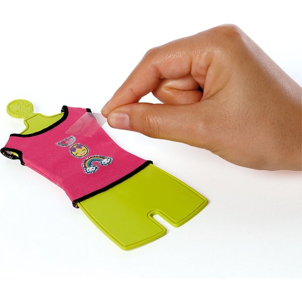 Ozdób jeansowy kombinezon, sukienkę, bluzkę lub spódniczkę kolorowymi naklejkami! W zestawie aż 40 wzorów, dzięki którym strój Barbie stanie się modny i niepowtarzalny.