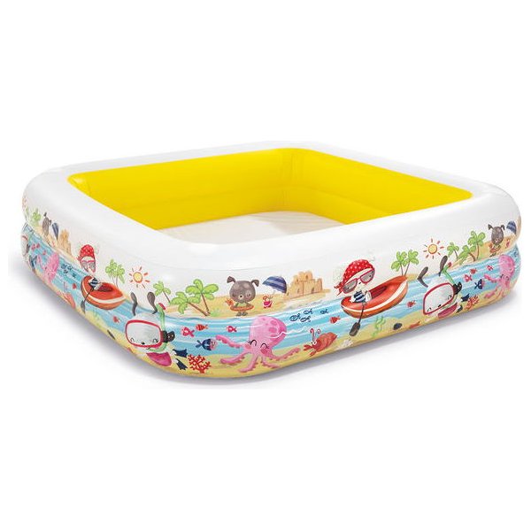 Nadeszły upalne dni, a do wakacyjnego wyjazdu jeszcze sporo czasu? Marka Intex pomoże Ci umilić oczekiwanie Twojej pociechy, wystarczy, że napełnisz wodą basen z daszkiem. Jest on na tyle uniwersalny, że gdy letnie upały dobiegną końca możesz zabrać go do domu i wypełnić kolorowymi kulkami. Brodzik Akwarium wykonano z odpornego na działanie promieni słonecznych materiału PVC o odpowiedniej grubości. Wyposażony jest w daszek przeciwsłoneczny, który osłoni głowę dziecka przed mocnym słońcem. Przyjazny nadruk przedstawiający mieszkańców akwarium sprawi, że zabawa będzie wyśmienita.