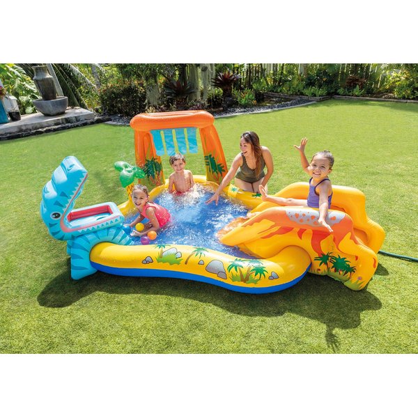 Duży i płytki basen w formie placu zabaw o tematyce dinozaura marki Intex, to propozycja na świetną zabawę i ochłodę w najbardziej upalne dni. Kolorowe akcesoria pobudzają wyobraźnię dziecka i umożliwiają jeszcze więcej.