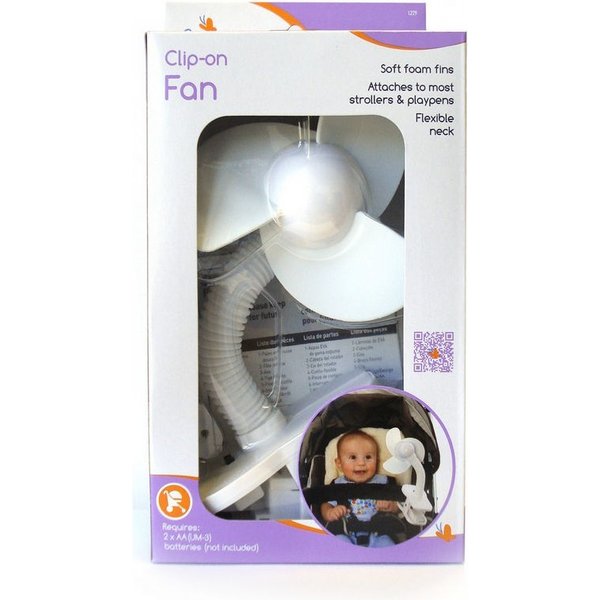 Wentylator marki Dreambaby jest w zupełności bezpieczny dla malucha - jego łopatki wykonane zostały z pianki. Daje on przyjemne odczucie chłodu dla malucha zarówno w wózku jak i kojcu w upalne dni. Elastyczna szyja wentylatora pozwala ustawić odpowiednią pozycję. Wentylator montowany jest za pomocą klipsa.
