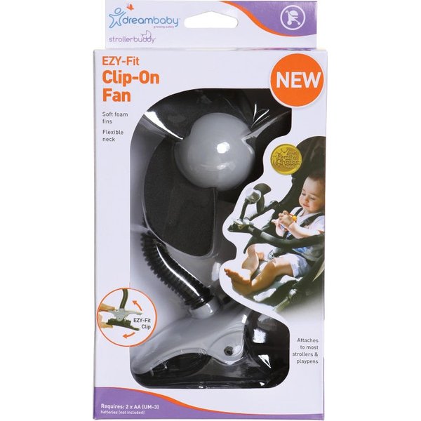 Wentylator marki Dreambaby jest w zupełności bezpieczny dla malucha - jego łopatki wykonane zostały z pianki. Daje on przyjemne odczucie chłodu dla malucha zarówno w wózku jak i kojcu w upalne dni. Elastyczna szyja wentylatora pozwala ustawić odpowiednią pozycję. Wentylator montowany jest za pomocą klipsa.