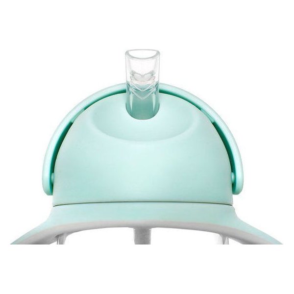 Bidon z obciążoną słomką pozwoli na wygodne picie niezależnie od kąta nachylenia. Słomka posiada ustnik ze specjalnym zaworem, który zapobiega przeciekaniu i reguluje przepływ powietrza co minimalizuje ryzyko występowania kolki. Rurka wykonana z miękkiego i delikatnego silikonu spożywczego, który nie będzie podrażniał dziąsełek maluszka. Posiada również ergonomiczny kształt, który ułatwia maluszkowi picie z niej.