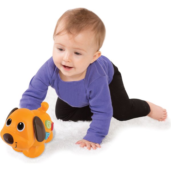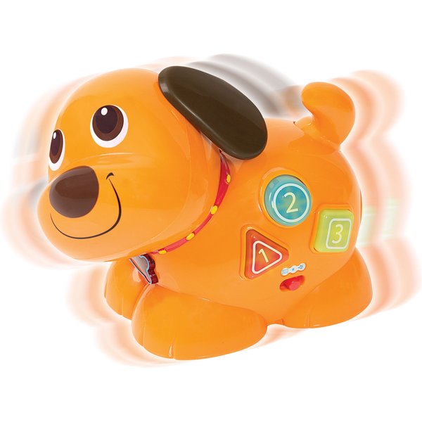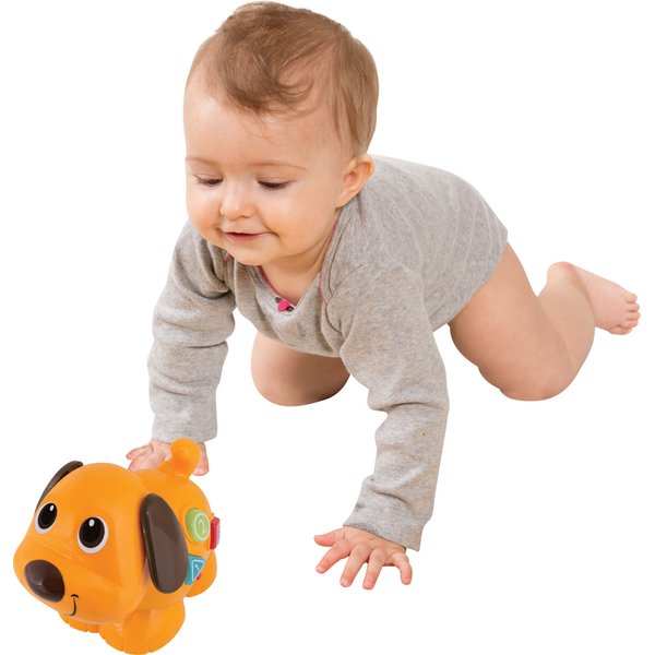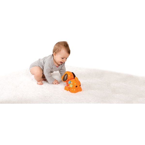 Po wciśnięciu przycisku piesek ruszy przed siebie, wesołe wypowiedzi oraz melodie będą zachęcać maluszka do gonienia za nim. Gdy piesek jest wprawiony w ruch jego główka porusza się na boki cały czas przykuwając uwagę dziecka.